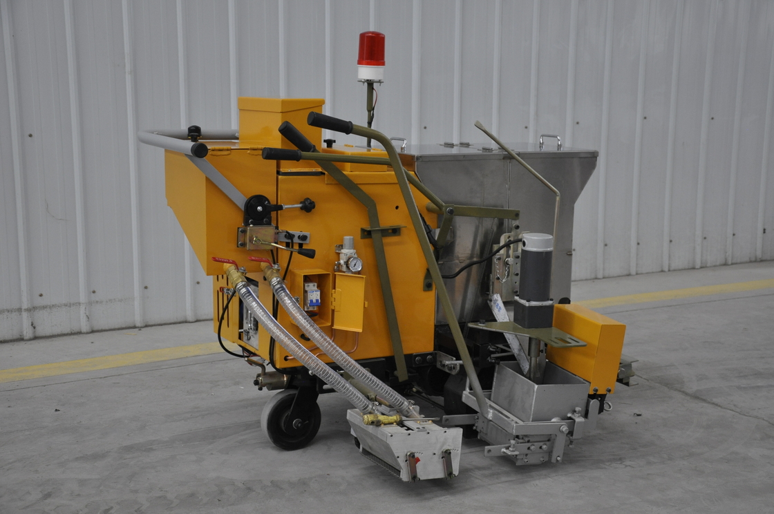 Hg-20mm-II steckt zwei Arten von Beschichtungen in denselben Lauf getrennt. Nachdem die Beschichtungen aus dem Tank entladen wurden, werden die Beschichtungen durch eine elektrische Rührwelle vollständig gerührt. Nach dem Mischen des Kreuzungstrichters wird die chemische Reaktion durchgeführt. Schließlich erfolgt die Markierung durch den Crossing Hopper. Im Vergleich zum Sprühen von Zweikomponenten-Markierungen hat das Kratzenmarkierungen die Vorteile einer dickeren Markierungsdicke, einer längeren Verschleißfestigkeit, einem besseren Reflexionsvermögen und einer gleichmäßigeren Mischung.